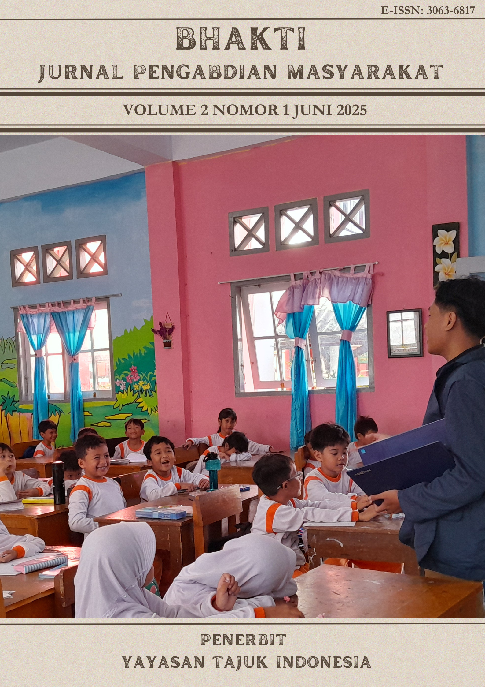 Bhakti: Jurnal Pengabdian Masyarakat | Volume 2 Nomor 2 Desember 2025 akan terdiri atas minimal 5 (Lima) artikel yang sementara ini terdiri dari 18 penulis dari Perguruan Tinggi meliputi: Universitas Tidar Jawa Tengah, Universitas Siliwangi Jawa Barat, dan Politeknik Negeri Cilacap.